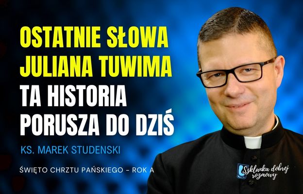 I moi kochani, Julian Tuwim w jednym ze swoich wierszy pod tytułem „Chrystus miasta” mówi o pewnym Nieznajomym, do którego podchodzą ulicznice, złodzieje, najgorsi przestępcy, cały ten margines, szumowiny wielkiego miasta, a także Maria Magdalena, która rozpoznaje w nieznajomym Jezusa. Niesamowita intuicja. Spróbujmy zaparzyć herbatę w naszej „szklance dobrej rozmowy”. Jakoś się nie chcę dzisiaj zaparzyć. Co się stało? Oczywiście domyślamy się. Woda jest zimna. Na początku naszych programów zawsze herbata się zaparza, bo wtedy jest wrzątek. Moi kochani, właśnie w zimnej, obojętnej atmosferze, kiedy nie będzie nam towarzyszyć to gorąco dociekania prawdy, kiedy będziemy unikać tematów dotyczących tego, co najważniejsze, będziemy pozbawieni tego, co jest sensem i celem naszego życia. W zimnej wodzie nie zaparzy się żadna herbata, chyba że jest sztucznie barwiona, bo też są takie.